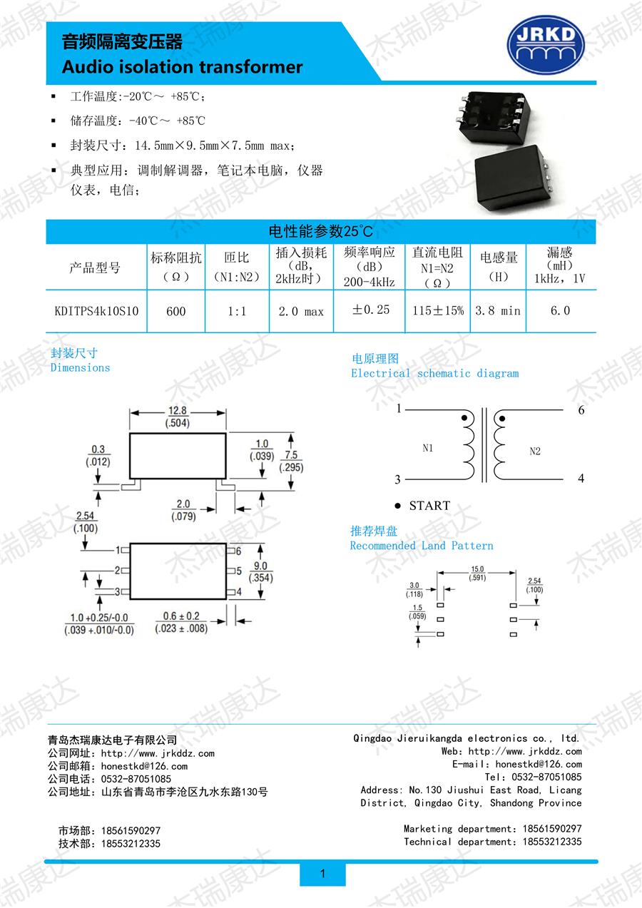 音頻隔離變壓器KDITPS4K10S10