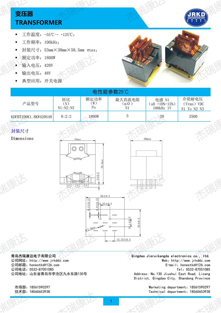 變壓器KDFBT100K1.8KW420S48